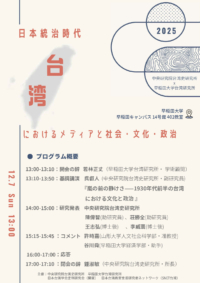 heishi2025-11-27T16:25:29+09:00国際シンポジウム【日本統治時代の台湾におけるメディアと社会・文化・政治】heishi2025-11-27T16:25:29+09:002025/11/26|